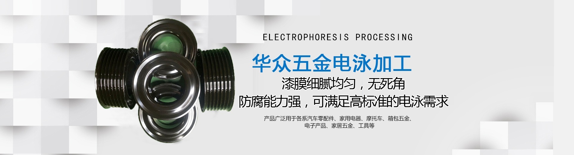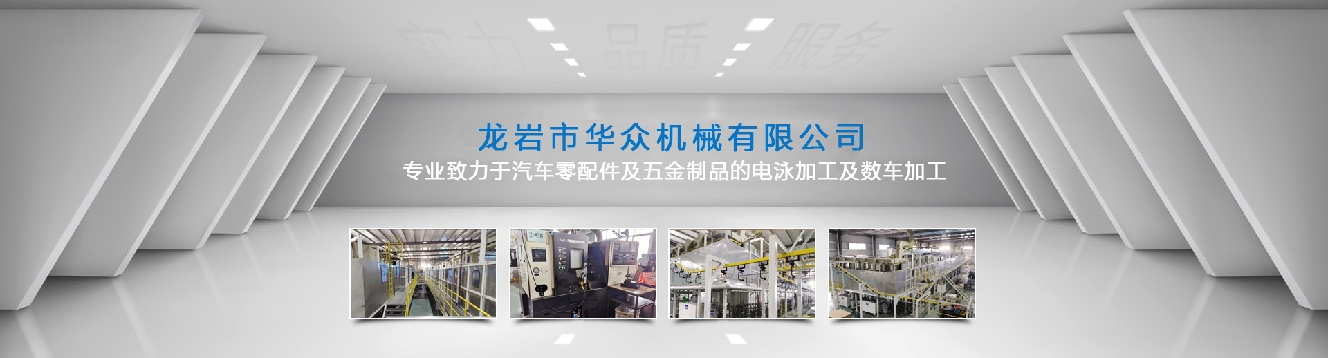 龍巖市華眾機械有限公司網站上線啦?。?! 龍巖市華眾機械有限公司前身為龍巖市杰瑞特工貿有限公司,成立于2010年12月。新廠座落于福建省龍巖市新羅區東寶工業集中區,注冊資本500萬元,占地面積約27,000平方米,員工60多人 。公司擁有涂裝行業10年以上工作經驗的技術團隊。2018年8月經NSF-ISR評估獲得IATF16949質量管理體系認證通過并取得證書。 現專業致力于汽車零配件及五金制品的電泳加工及數車加工。